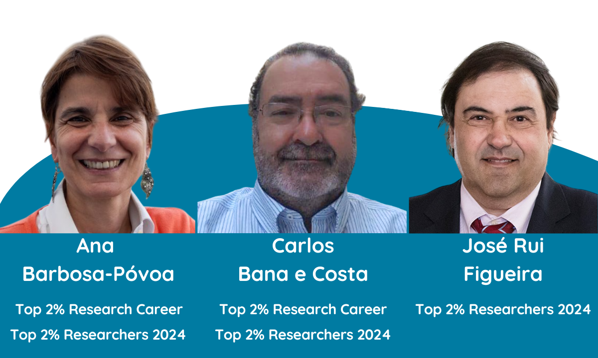 Ana Paula Póvoa and Carlos Bana e Costa are ranked in the top 2% for their research careers. And Ana Paula Póvoa, Carlos Bana e Costa and José Rui Figueira are also featured among the top 2% researchers for 2024.